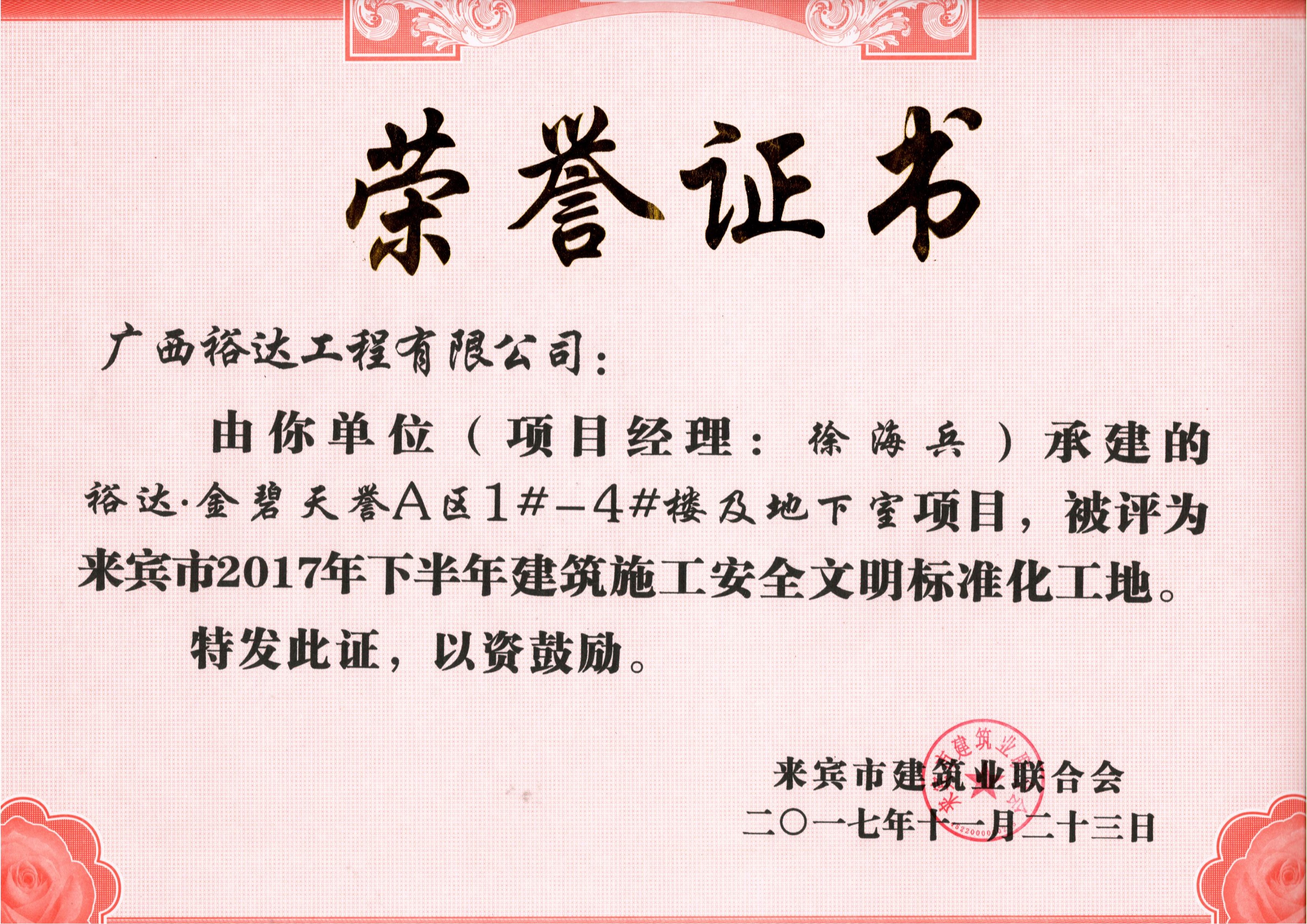 开云集团有限公司再添来宾市“安全文明标准化工地”