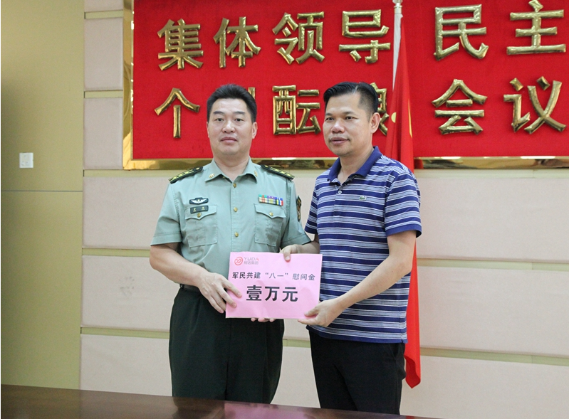 在“八一”建军节来临之际,为增进与部队官兵的情感交流,共话军民鱼水情谊,7月30日,由集团副总裁梁锋、总裁助理杨贻敏、杨硕、行政副总监罗桂平、行政部经理覃婷婷等一行领导组成慰问团,先后到武警来宾支队、广西陆军预备役兵师第一团、来宾市消防支队、中国人民解放军广西来宾军分区开展八一慰问活动,向部队官兵表达了崇高的敬意并送去节日祝福。