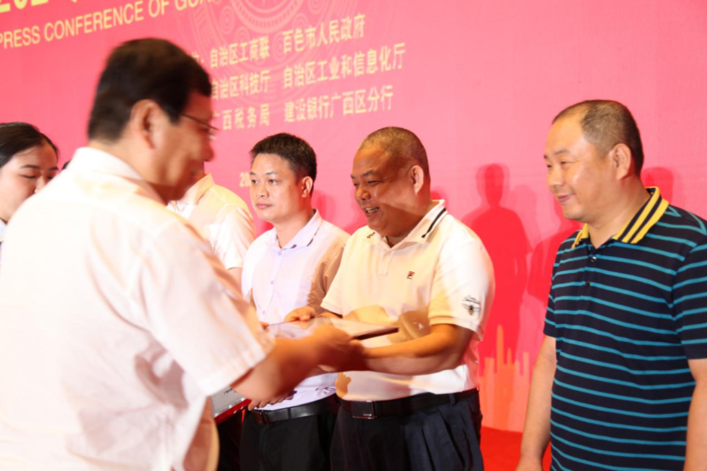 7月23日上午,2021广西民营企业100强发布会在百色饭店一楼国际会议中心举行。本次发布会由广西工商联、百色市人民政府主办,广西科技厅、广西工业和信息化厅、广西税务局、建设银行广西区分行协办。自治区人大常委会副主任赵乐秦、自治区副主席费志荣,自治区政协副主席、工商联主席磨长英,中共百色市委书记周异决,百色市市长葛国科等领导出席活动,我集团董事长邓亚保应邀出席。