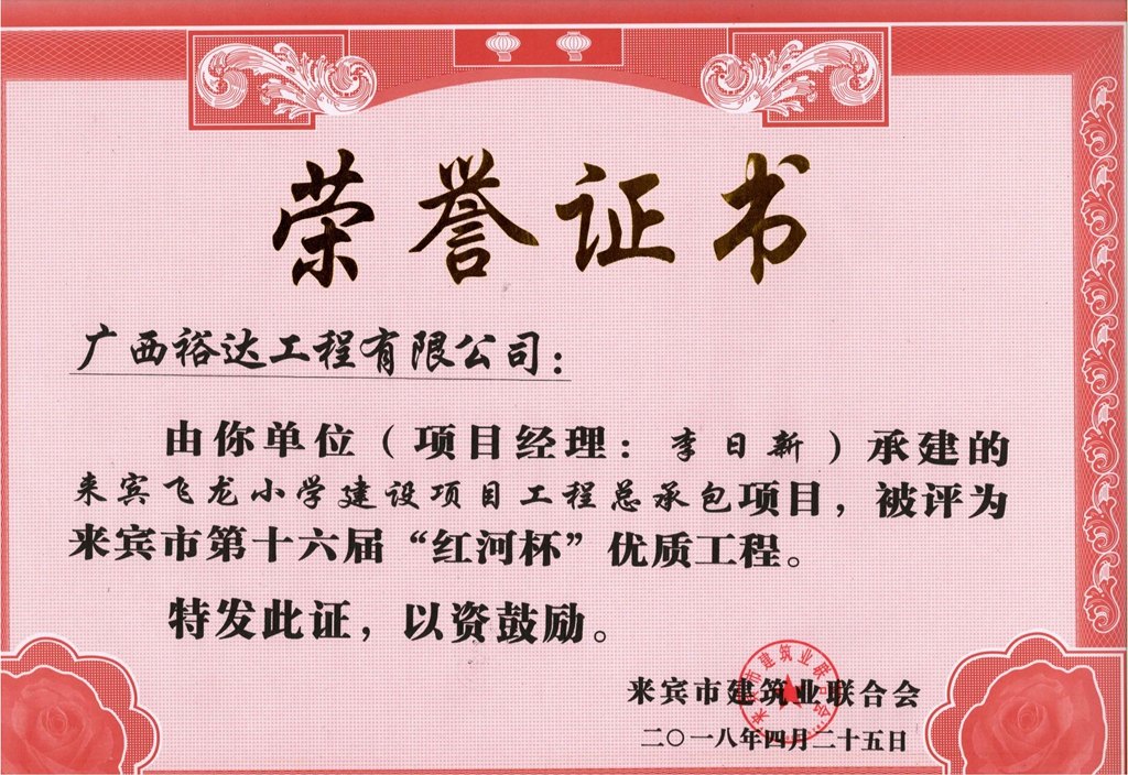 2018年来宾市第十六届“红河杯”优质工程(来宾飞龙小学建设项目工程总承包项目)