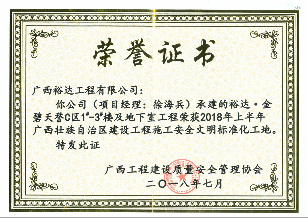 2018年上半年广西壮族自治区建设工程施工安全文明标准化工地